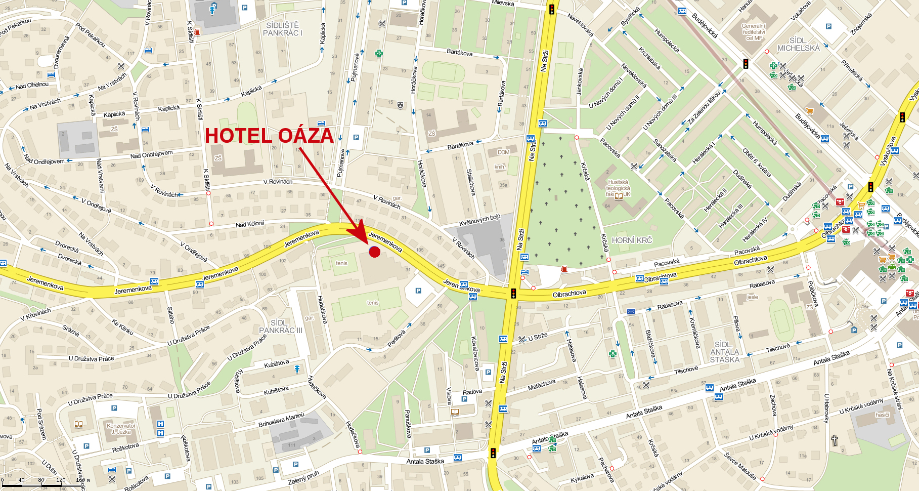 METRO - trasa C - stanice Kačerov, dále autobusem do zastávky Zálesí